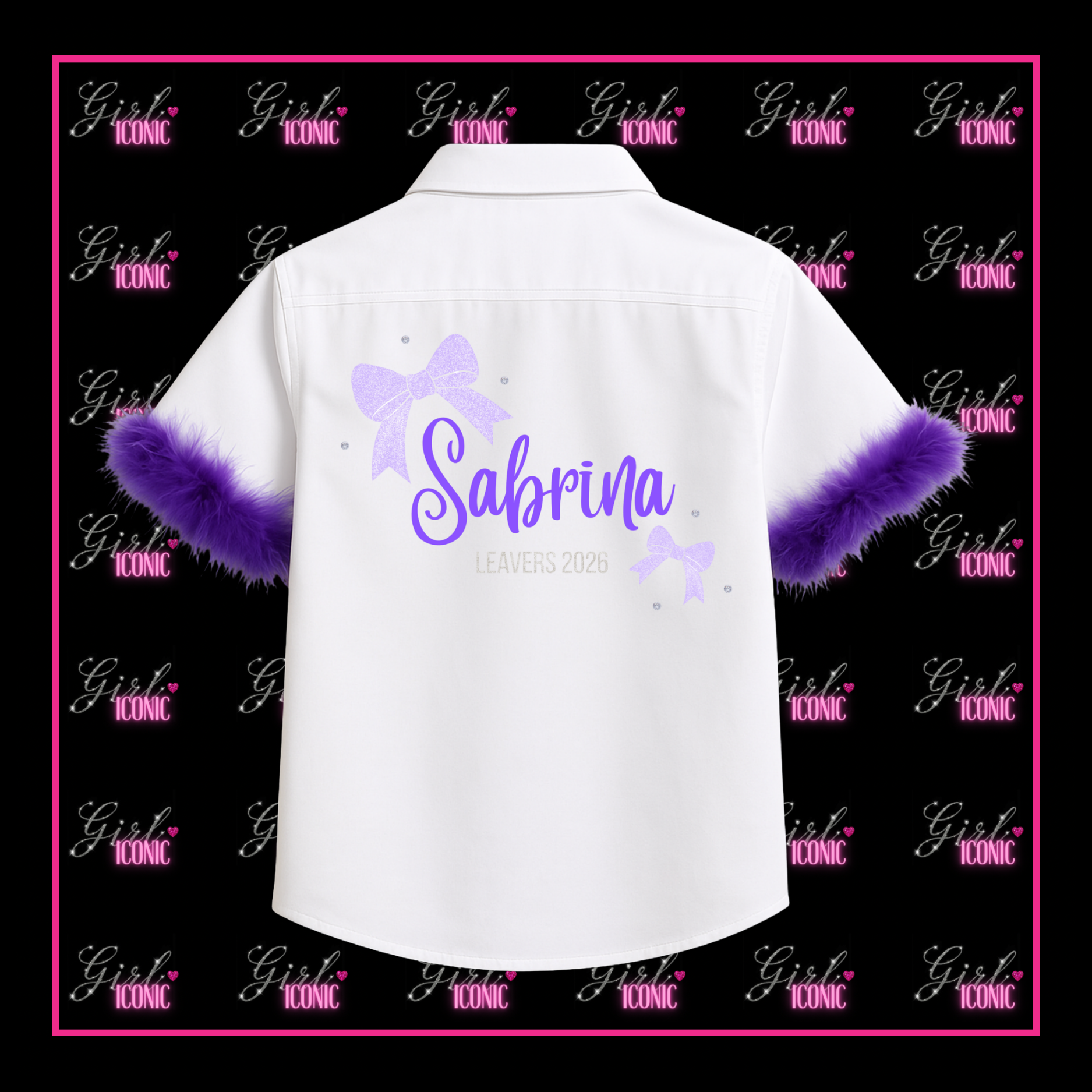 Our gorgeous range of leavers shirts, are all about fun, friendship, and making memories you’ll never forget. Each shirt is fully personalised, so you can choose your design, colours, and add the cutest finishing touches like bows and feathers for that perfect girly vibe.
