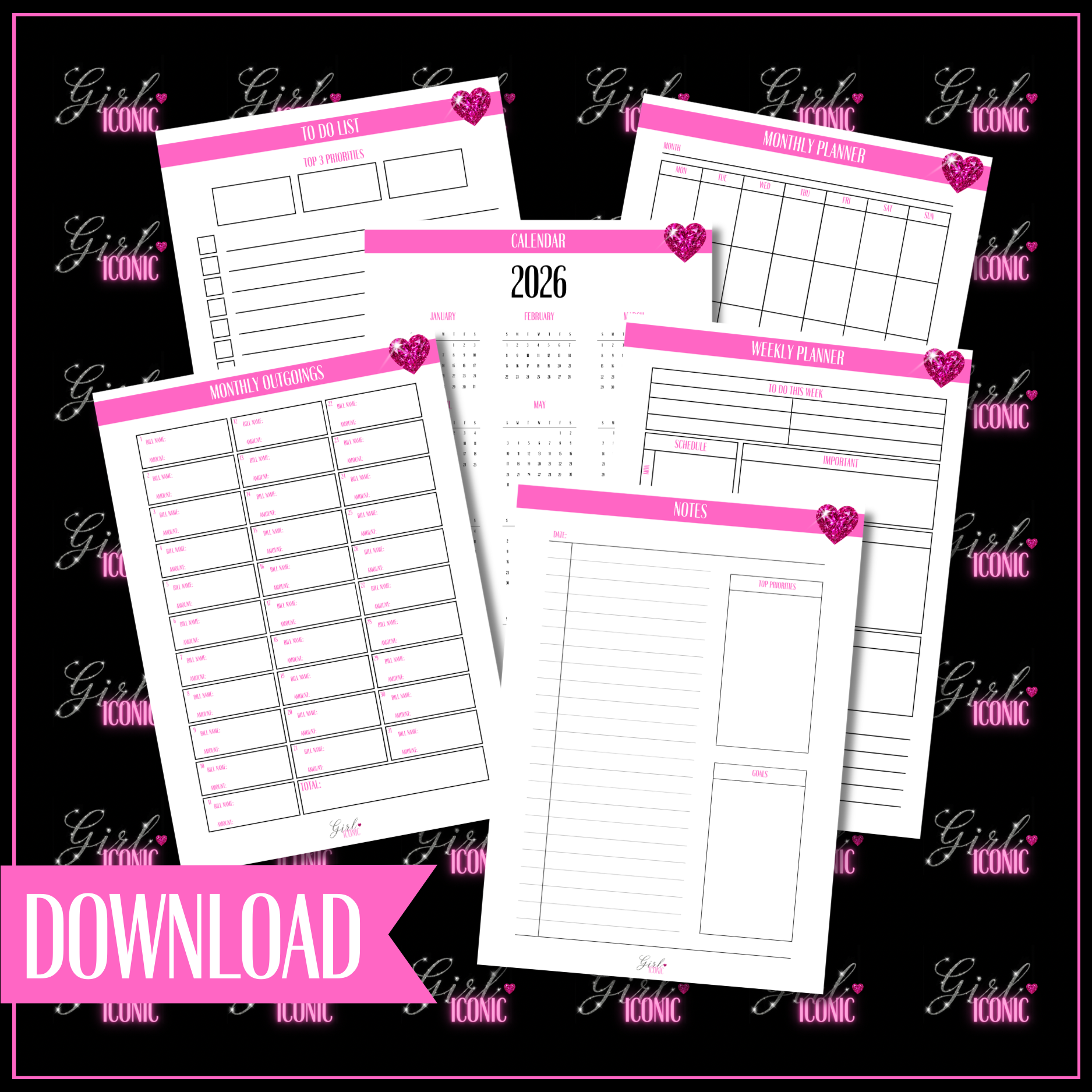 Get organised your way with this beautifully designed all-in-one digital planner pack, created to help you plan, track, and stay on top of everyday life throughout 2026 and beyond. Whether you love detailed daily planning or prefer a big-picture overview, this versatile digital download gives you everything you need in one easy-to-use bundle.