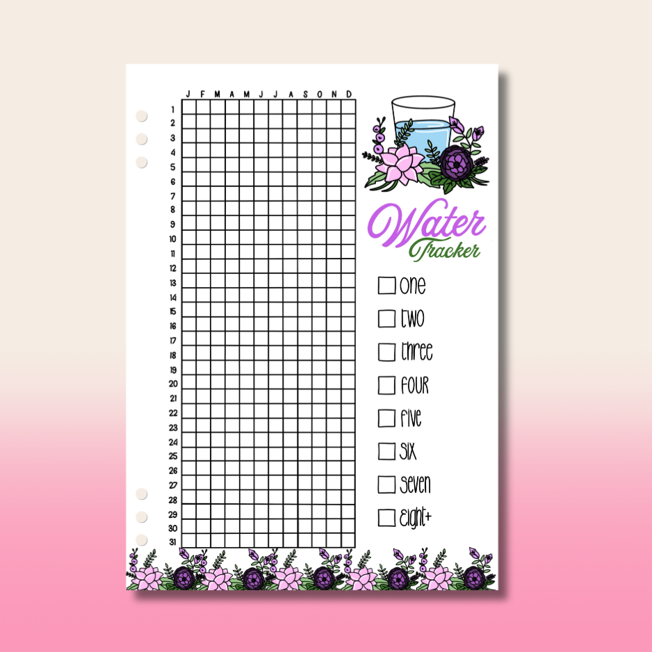 1x Water Tracker Planner Page Insert
