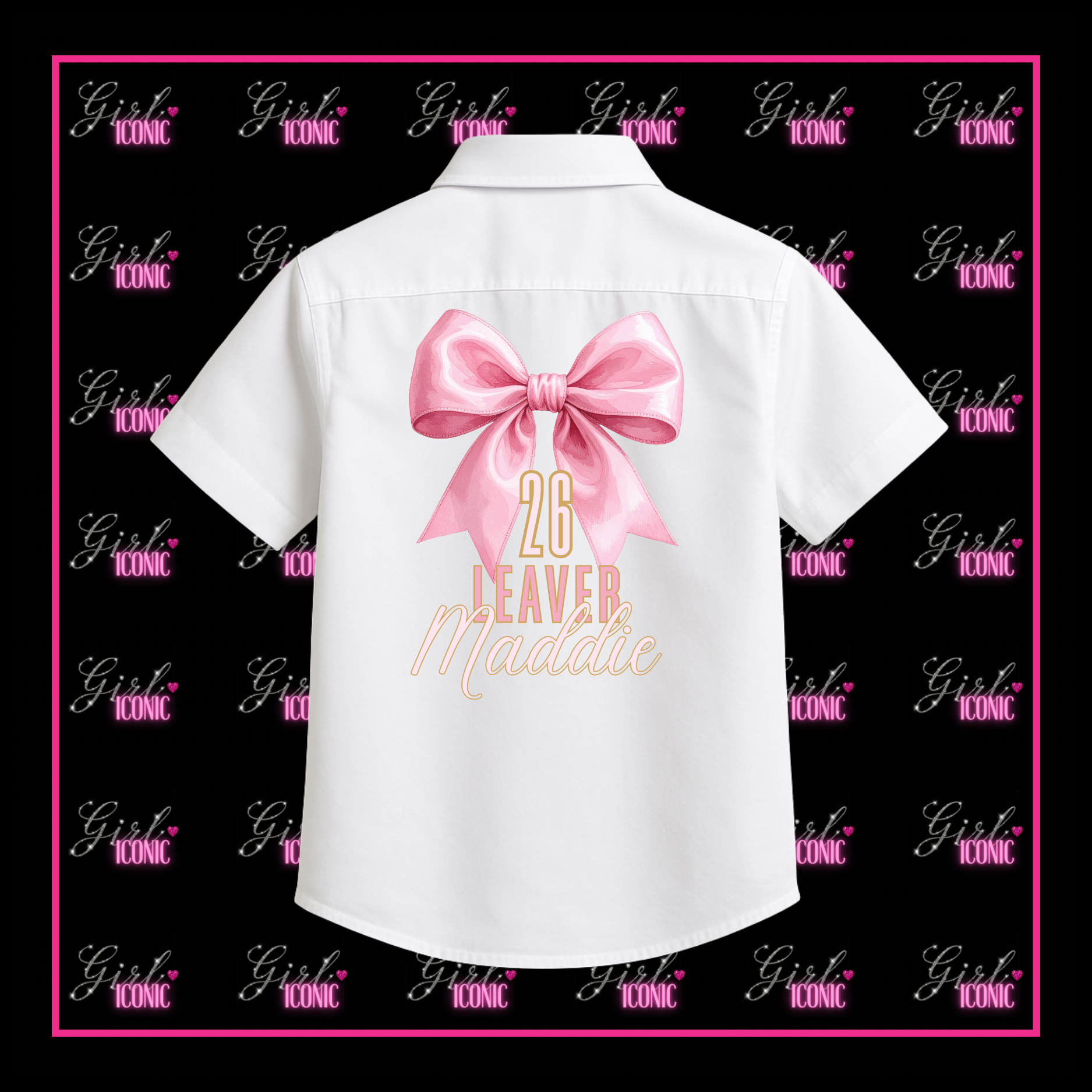 Our gorgeous range of leavers shirts, are all about fun, friendship, and making memories you’ll never forget. Each shirt is fully personalised, so you can choose your design, colours, and add the cutest finishing touches like bows and feathers for that perfect girly vibe.
