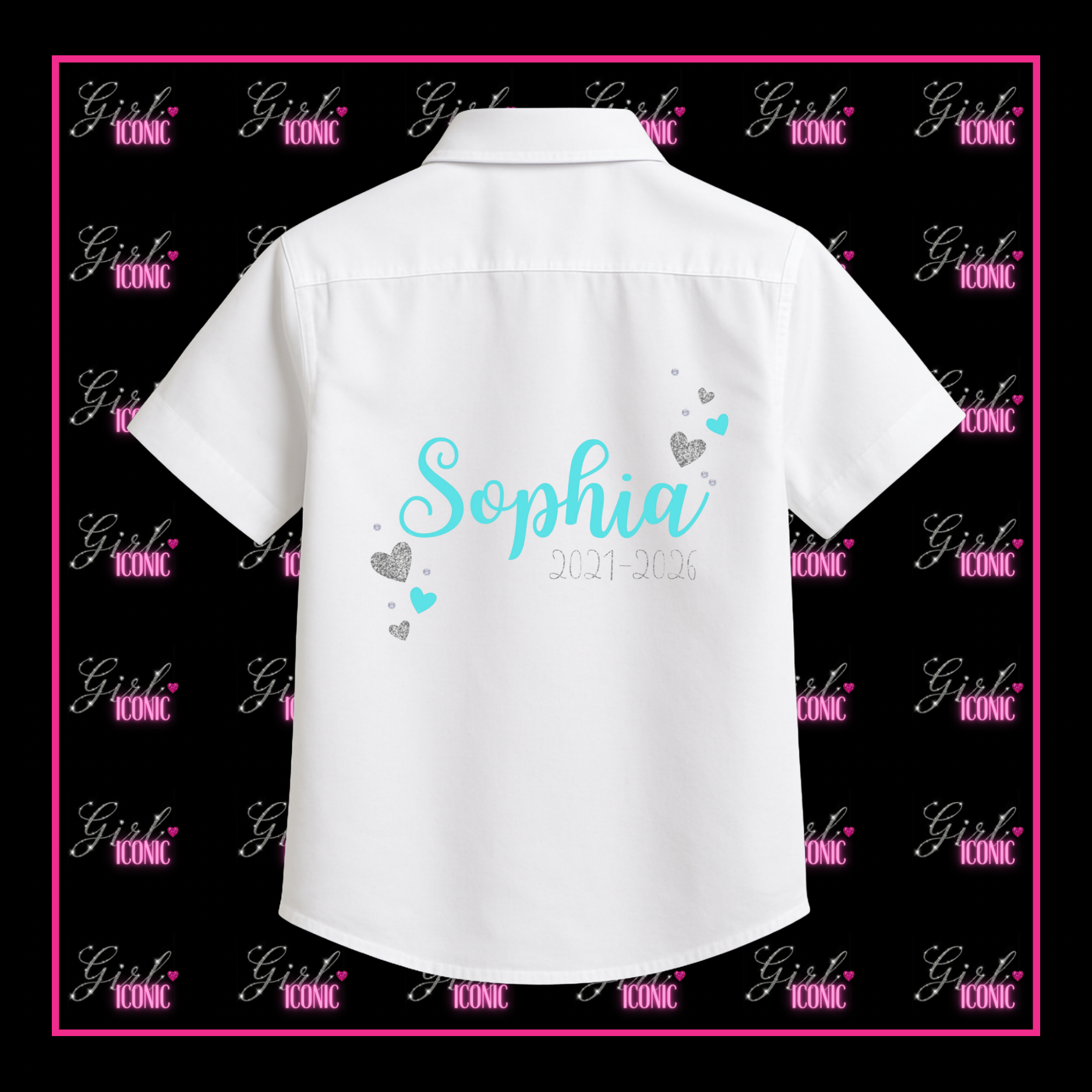 Our gorgeous range of leavers shirts, are all about fun, friendship, and making memories you’ll never forget. Each shirt is fully personalised, so you can choose your design, colours, and add the cutest finishing touches like bows and feathers for that perfect girly vibe.